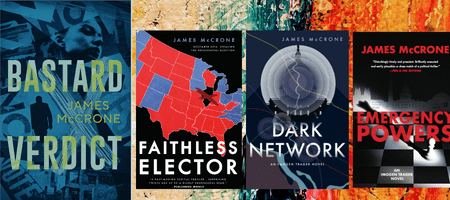 James McCrone is the author of the Imogen Trager political suspense-thrillers Faithless Elector, Dark Network , and Emergency Powers–noir tales about a stolen presidency, a conspiracy, and a nation on edge. Bastard Verdict, his fourth novel, is about a conspiracy surrounding a second Scottish Independence referendum. All books are available on BookShop.org, IndyBound.org, Barnes & Noble, Waterstones (UK), your local bookshop, and Amazon. eBooks are available in multiple formats including Apple, Kobo, Nook and Kindle. His work-in-progress is called Witness Tree, a suspense-murder mystery set in rural Oregon. (No Imogen, this time. 🙂